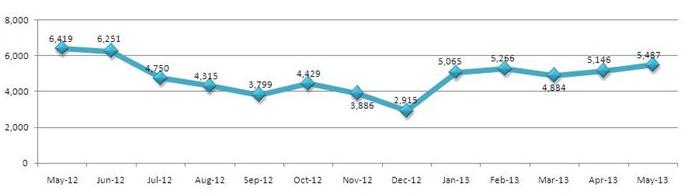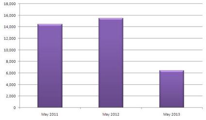 The number of job seekers interested in new permanent or temporary job opportunities rose from 5,146 in April 13 to 5,487 in May 13 – an increase of 7%. Compared to May 12 (6,419), there were 15% fewer professionals in the hiring market in May 13.