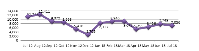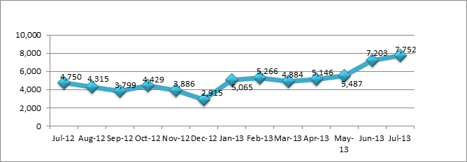 Professionals looking for new positions numbered 7,752 in July 13 from 7,203 in June 13 – an 8% increase. Additionally, the year on year figure for those actively seeking new career opportunities shows an increase of 63%.