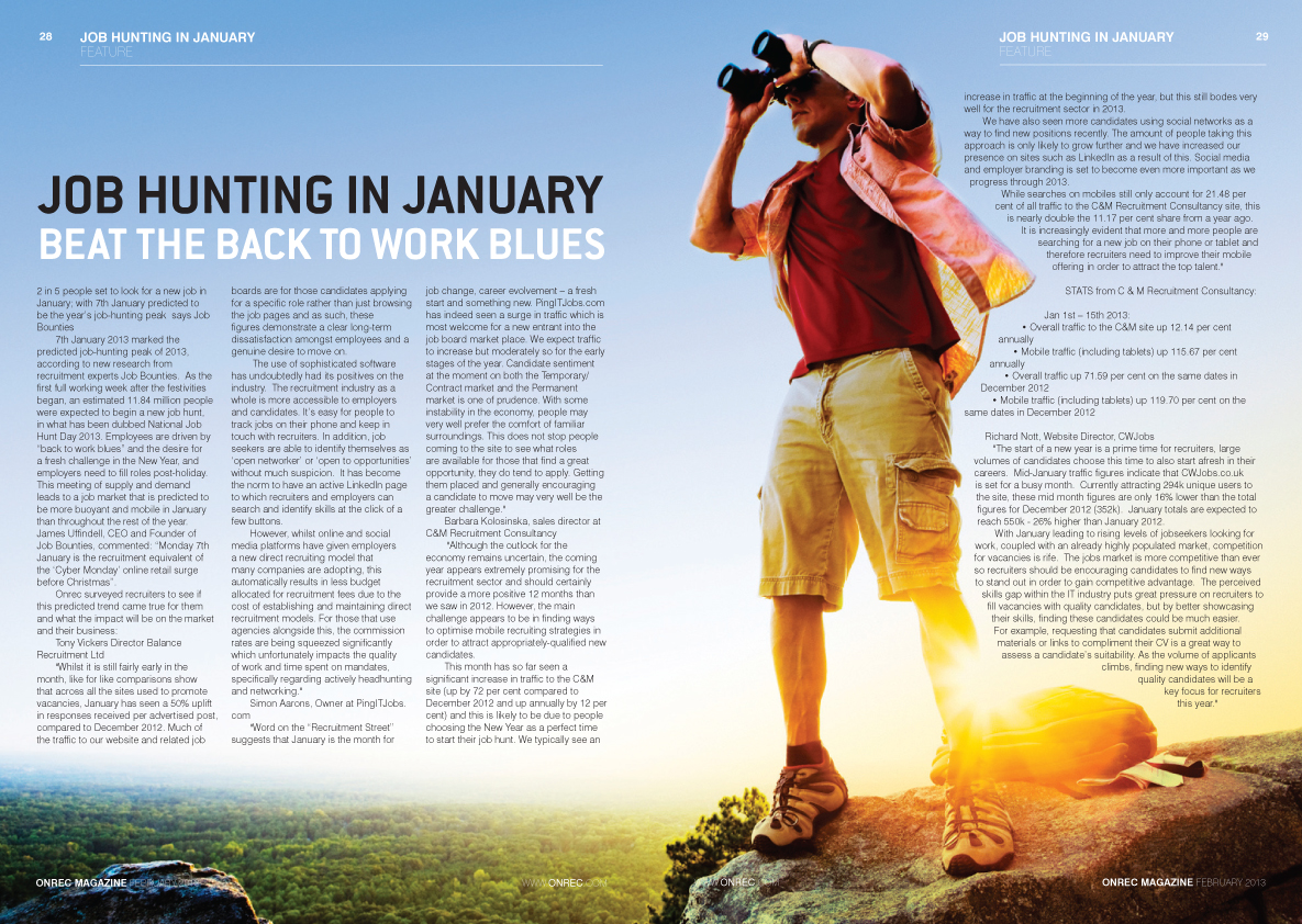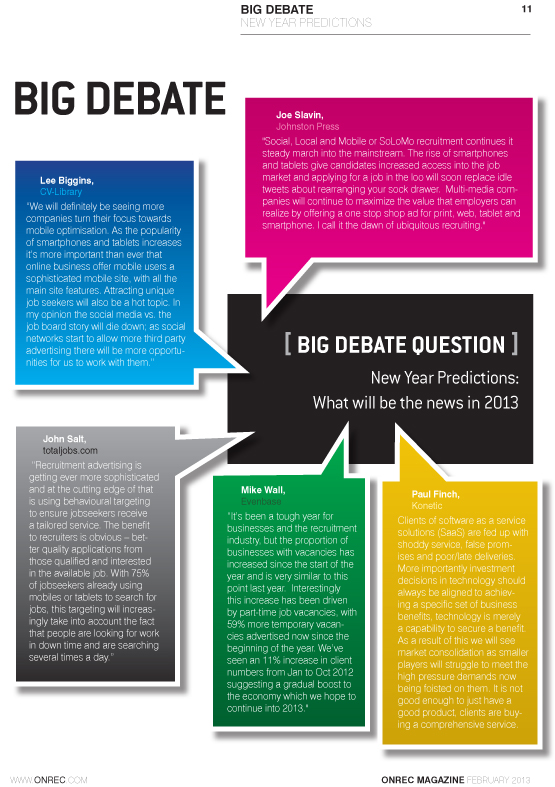Latest edition of Online recruitment Magazine out today. Read unique editorial and comment. In this edition why update your ATS, recruitment icon, psychometric testing gets measure of candidates and job hunting in January