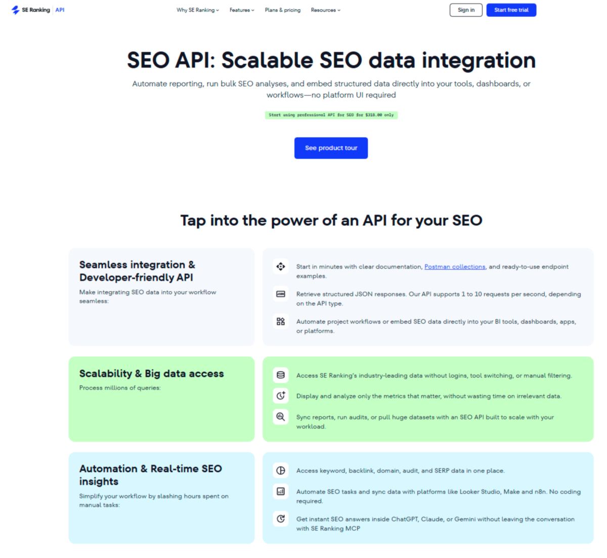 SE Ranking API gets mentioned often among Ahrefs API alternatives for its balance of cost and features. Many experts switch here when Ahrefs pricing feels too steep.