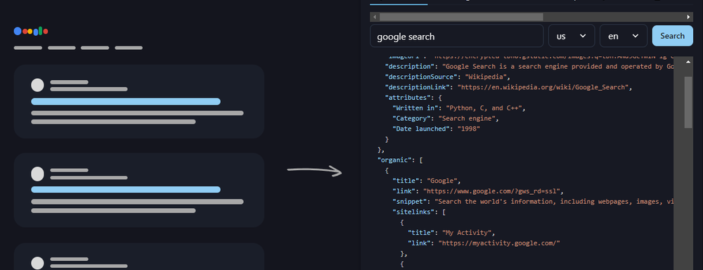 Lightning-fast Google SERP results in 1-2 seconds.