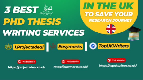 ● Discover the 3 best PhD thesis writing companies in the UK — Projectsdeal.co.uk, Easymarks.co.uk, and TopUKWriters.co.uk — trusted by thousands of PhD scholars for their reliable, plagiarism-free, and timely research assistance.