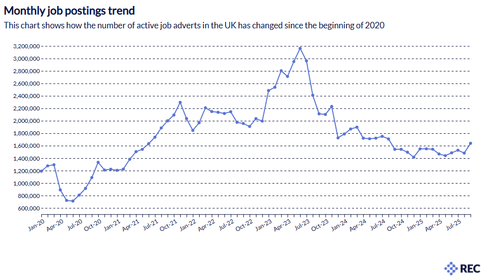 - The number of new job postings in the UK in September 2025 was 742,967 – up by 11.3% from August 2025 as firms began hiring processes after the summer.
